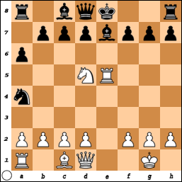 7...Cxa4?! (7...Fe7 est la bonne suite pour les noirs) 8.Cxe5 Cxe5? (il faut jouer 8...Fe7) 9.Txe5+ Fe7 10.Cd5!avec une position blanche déjà gagnante!