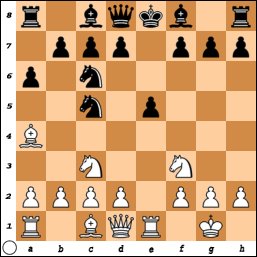 1.e4 e5 2.Cf3 Cc6 3.Fb5 a6 4.Fa4 Cf6 5.0-0 Cxe4 6.Te1!? (au lieu de la ligne principale 6.d4) Cc5 7.Cc3! (7.Fxc6 dxc6 n'est pas très enthousiasmant)